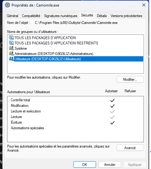 En fait pour lancer Camomile, il faut être administrateur du PC !!!  et il n'est pas question de donner ce rôle au gamin concerné.