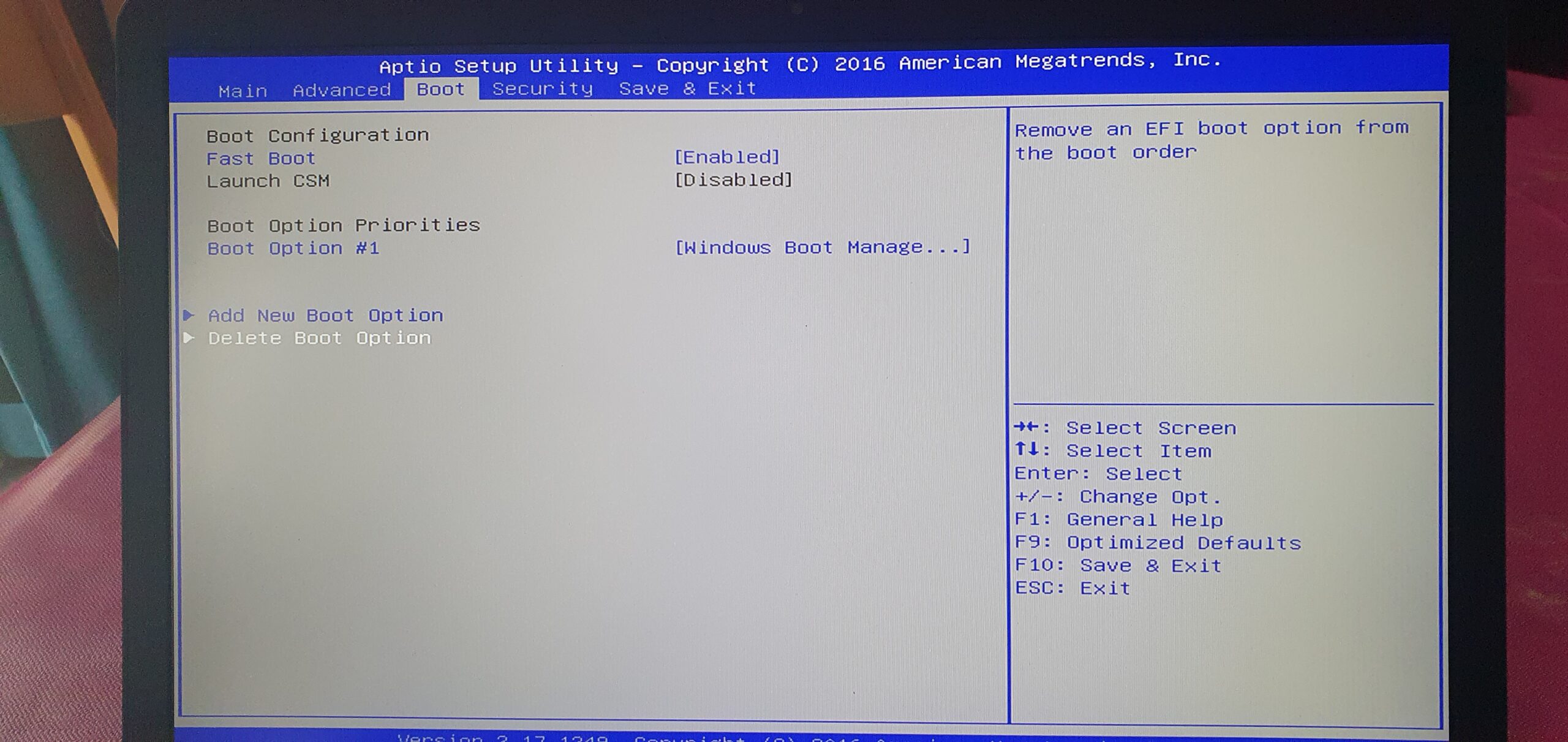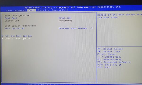 Delete Boot Option (en Blanc)