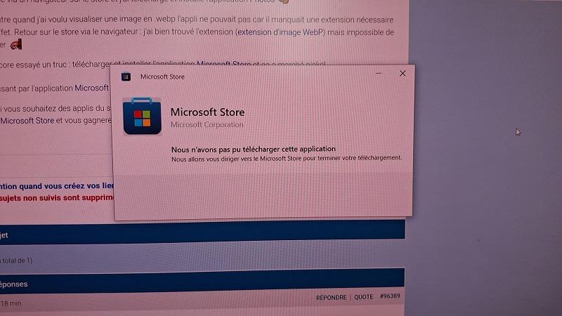 ensuite lorsque je veux installer l'appli 'photos microsoft du store (je ne la trouve pas sur le PC), je vais dans le store et impossible à installer :