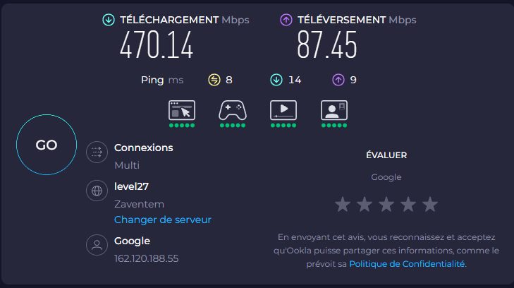 J'avais déjà triplé ma vitesse de téléchargement il y a quelques semaines en passant du wifi 2 au wifi 5, et maintenant j'ai encore triplé la vitesse de téléchargement avec la fibre ! J'atteins 24-25 Mo/sec (au premier abord toujours)