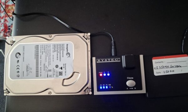 Dernier épisode : la difficulté rencontrée pour faire reconnaître le Hdd de la tour réside dans le fait qu'il faut insérer ce Hdd Seagate Barracuda 7200.12 dans un boitier avec une alimentation externe. En fouillant dans mes tiroirs j'ai extirpé ce boitier qui me semble dater de ma première tour Médion des années 80 et qui a bien fait l'affaire puisque j'ai pu cloner ce Hdd sur un Ssd de même capacité.