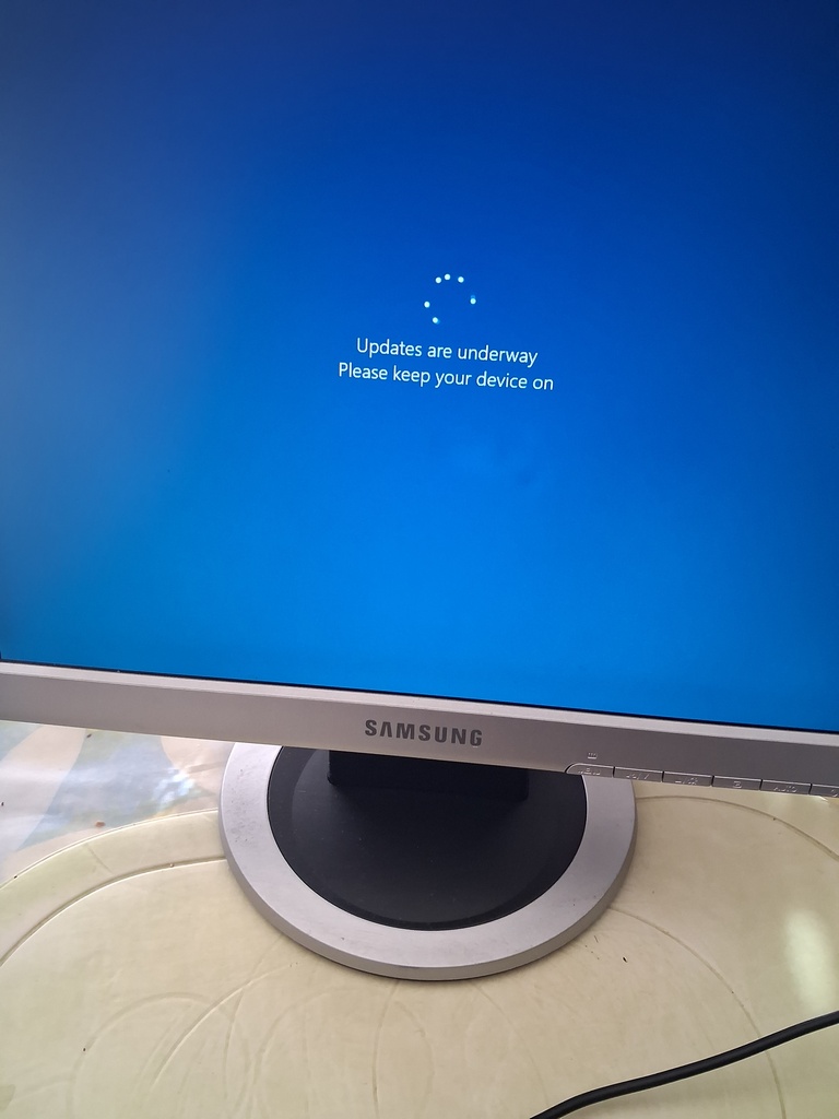 Je résume : j'ai entrepris d'installer windows 10 Ltsc sans perte de données sur la tour ancienne Lenovo de ma voisine et tout a bien fonctionné pendant l'installation et plusieurs redémarrages de Windows et sur le dernier il a buggué. A l'apparition du message en pièce jointe j'ai patienté et je l'ai laissé tourné jusqu'au dimanche 19/10 midi sans amélioration alors j'ai décidé de l'éteindre en force brute et de le ramener chez moi pour m'éviter les déplacements.